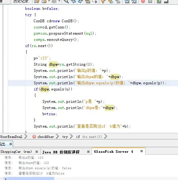 数据库中的密码就是String类型的"123",请问下dbpw.equals(p)怎么老是返回FALSE ,应该是true猜对,请问下怎么回事,如何解决?