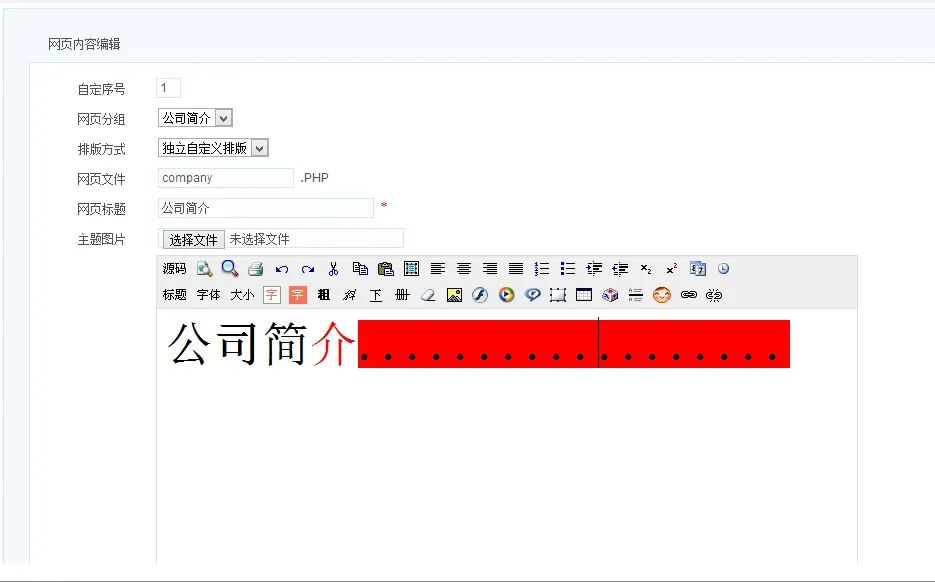 <meta content="IE=7.0000" http-equiv="X-UA-Compatible"> <title></title> <link rel="stylesheet" type="text/css" href="css/style(2).css"> <script type="text/javascript" src="js/base(2).js"></script> <script type="text/javascript" src="js/page.js"></script> </head> <body marginheight="0"> <s:iterator value="companyInfo" var="companyInfo"> <form id="modiPageForm" enctype="multipart/form-data" method="post" name="form" action="companyInfoAction_findCompanyInfoById?companyInfoId=<s:property value="#companyInfo.companyInfoId"/>"> <div class="formzone"> <div class="namezone">网页内容编辑</div> <div class="tablezone"> <table style="BORDER-COLLAPSE: collapse" cellspacing="0" cellpadding="2" width="100%" align="center" border="0"> <tbody> <tr> <td height="30" align="center">自定序号</td> <td height="30"><input class="input" style="WIDTH: 25px" maxlength="9" value="<s:property value="#companyInfo.companyInfoId"/>" name="companyInfo.companyInfoId"> </td> </tr> <tr> <td height="30" align="center">网页分组</td> <td height="30"><select id="groupid" name="companyInfo.webPageGroup"> <s:if test="#companyInfo.webPageGroup==1"> <option selected="true" value="1">公司简介</option> <option value="22">联系我们</option> </s:if> <s:else> <option value="1">公司简介</option> <option selected="true" value="22">联系我们</option> </s:else> </select></td> </tr> <tr> <td height="30" align="center">排版方式</td> <td height="30"><select id="modiselmodle" name="companyInfo.typeSetMethod"> <s:if test="#companyInfo.typeSetMethod==1"> <option selected="true" value="1">独立自定义排版</option> <option value="0">共享分组的排版</option> </s:if> <s:else> <option value="1">独立自定义排版</option> <option selected="true" value="0">共享分组的排版</option> </s:else> </select> </td> </tr> <tr id="tr_fold"> <td height="30" align="center">网页文件</td> <td height="30"><input id="pagefolder" class="input" maxlength="30" value="<s:property value="#companyInfo.webPageDocument"/>" name="companyInfo.webPageDocument"> .PHP</td> </tr> <tr> <td height="30" width="100" align="center">网页标题</td> <td height="30"><input id="title" class="input" maxlength="200" size="36" value="<s:property value="#companyInfo.webPageTitle"/>" name="companyInfo.webPageTitle"> <font color="#ff0000">*</font> </td> </tr> <tr> <td height="30" align="center">主题图片</td> <td height="30"><input id="jpg" class="input" size="50" type="file" name="jpg"></td> </tr> <tr> <td height="30" width="100" align="center">网页内容</td> <td height="30"><input type="hidden" value="<s:property value="#companyInfo.webPageContent"/>" name="body"> <script type="text/javascript" src="js/KindEditor.js"></script> <script type="text/javascript"> var editor = new KindEditor("editor"); editor.hiddenName = "body"; editor.editorWidth = "700px"; editor.editorHeight = "350px"; editor.skinPath = "img/"; editor.uploadPath = "../../kedit/upload_cgi/upload.php"; editor.imageAttachPath="page/pics/"; editor.iconPath = "img/"; editor.show(); function KindSubmit() { editor.data(); } </script> <div style="font-family:Courier New;"> <div style="width:700px;;border:1px solid #DDDDDD;background-color:#EFEFEF"> <table cellpadding="0" cellspacing="0" border="0" height="26"> <tbody> <tr> <td style="padding:2px;"><img id="KE_SOURCE" src="img/source.gif" alt="视图转换" title="视图转换" align="absmiddle" style="border:1px solid #EFEFEF;cursor:pointer;height:20px;" onclick="javascript:KindExecute('KE_SOURCE');" onmouseover="javascript:this.style.border='1px solid #AAAAAA';" onmouseout="javascript:this.style.border='1px solid #EFEFEF';"> </td> <td style="padding:2px;"><img id="KE_PREVIEW" src="img/preview.gif" alt="预览" title="预览" align="absmiddle" style="border:1px solid #EFEFEF;cursor:pointer;height:20px;" onclick="javascript:KindExecute('KE_PREVIEW');" onmouseover="javascript:this.style.border='1px solid #AAAAAA';" onmouseout="javascript:this.style.border='1px solid #EFEFEF';"> </td> <td style="padding:2px;"><img id="KE_ZOOM" src="img/zoom.gif" alt="显示比例" title="显示比例" align="absmiddle" style="border:1px solid #EFEFEF;cursor:pointer;height:20px;" onclick="javascript:KindExecute('KE_ZOOM');" onmouseover="javascript:this.style.border='1px solid #AAAAAA';" onmouseout="javascript:this.style.border='1px solid #EFEFEF';"> </td> <td style="padding:2px;"><img id="KE_PRINT" src="img/print.gif" alt="打印" title="打印" align="absmiddle" style="border:1px solid #EFEFEF;cursor:pointer;height:20px;" onclick="javascript:KindExecute('KE_PRINT');" onmouseover="javascript:this.style.border='1px solid #AAAAAA';" onmouseout="javascript:this.style.border='1px solid #EFEFEF';"> </td> <td style="padding:2px;"><img id="KE_UNDO" src="img/undo.gif" alt="回退" title="回退" align="absmiddle" style="border:1px solid #EFEFEF;cursor:pointer;height:20px;" onclick="javascript:KindExecute('KE_UNDO');" onmouseover="javascript:this.style.border='1px solid #AAAAAA';" onmouseout="javascript:this.style.border='1px solid #EFEFEF';"> </td> <td style="padding:2px;"><img id="KE_REDO" src="img/redo.gif" alt="前进" title="前进" align="absmiddle" style="border: 1px solid rgb(239, 239, 239); cursor: pointer; height: 20px;" onclick="javascript:KindExecute('KE_REDO');" onmouseover="javascript:this.style.border='1px solid #AAAAAA';" onmouseout="javascript:this.style.border='1px solid #EFEFEF';"> </td> <td style="padding:2px;"><img id="KE_CUT" src="img/cut.gif" alt="剪切" title="剪切" align="absmiddle" style="border: 1px solid rgb(239, 239, 239); cursor: pointer; height: 20px;" onclick="javascript:KindExecute('KE_CUT');" onmouseover="javascript:this.style.border='1px solid #AAAAAA';" onmouseout="javascript:this.style.border='1px solid #EFEFEF';"> </td> <td style="padding:2px;"><img id="KE_COPY" src="img/copy.gif" alt="复制" title="复制" align="absmiddle" style="border: 1px solid rgb(239, 239, 239); cursor: pointer; height: 20px;" onclick="ja
