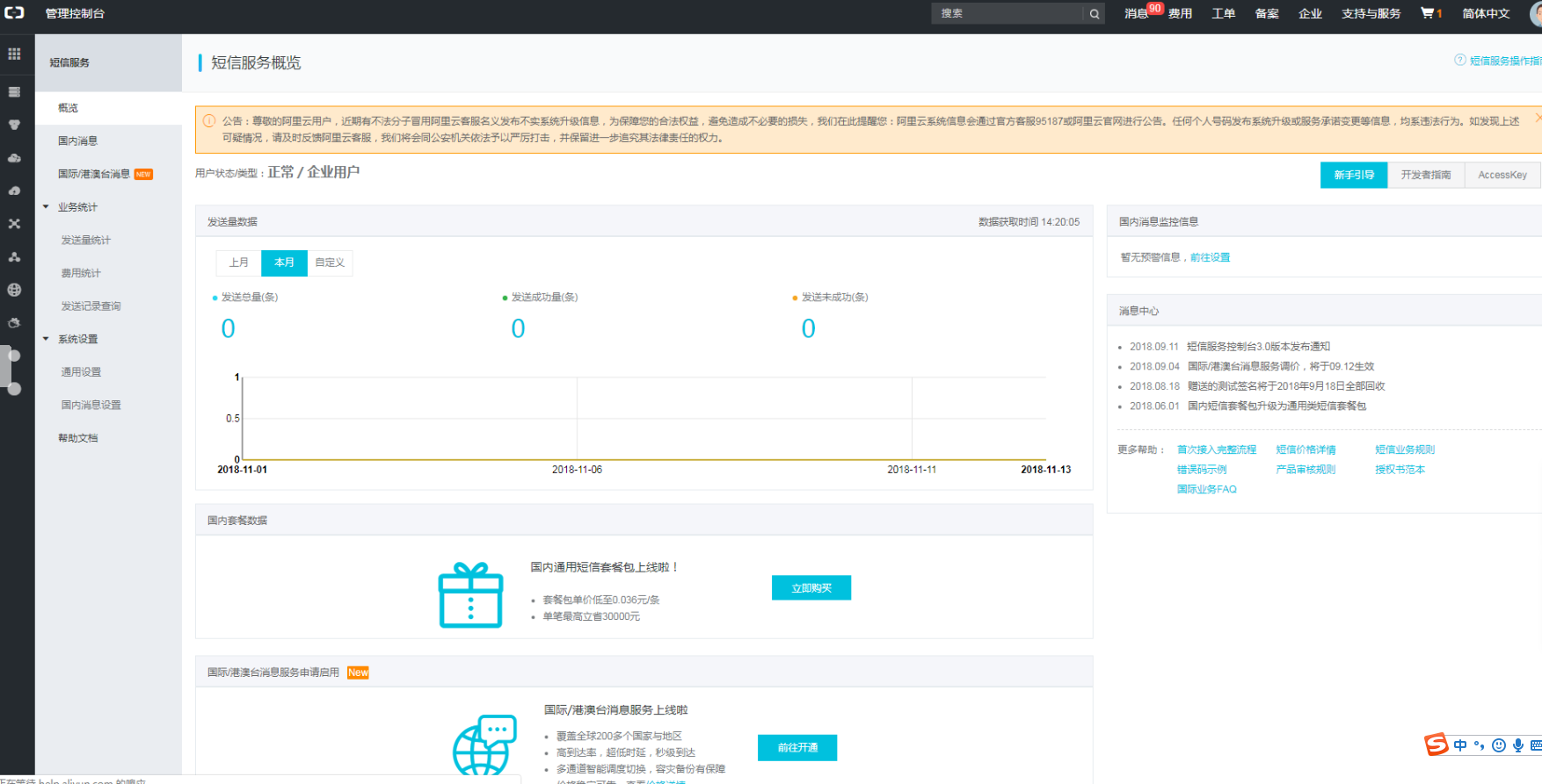阿里大于已经并入短息服务,请按照最新的策略进行购买短信包。