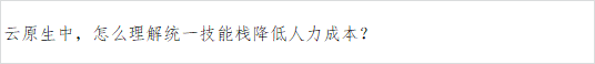 在云原生技术体系中,实现统一技能以降低人力成本主要体现在以下几个方面: