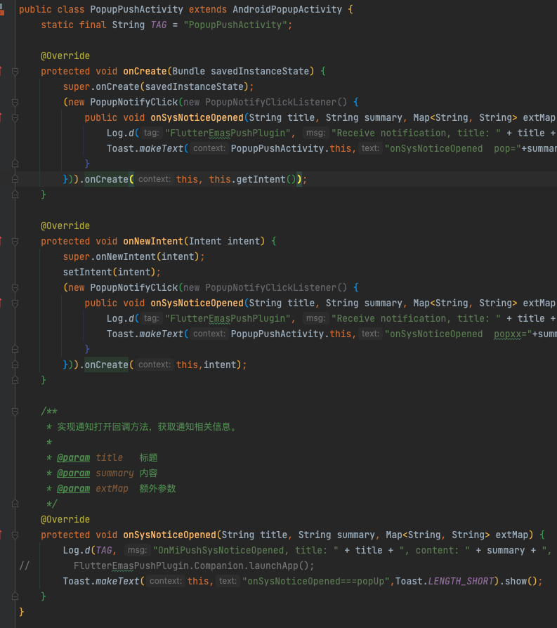 • 拿不到, 只有点击拉起app后才能拿到。点击拉起 , 文档 https://help.aliyun.com/document_detail/434684.html?spm=a2c4g.11186623.0.0.4db23594AF29iJ,你继承了这个类就没必要再写下边这个。 你看下文档, 这俩2选1 的lQLPJxbrKEjVqPHNATTNAj2wZWeNh-M1J1sDglkfKkA2AA_573_308.png此答案整理自钉钉群“【移动推送】技术支持3群-应用研发平台EMAS”