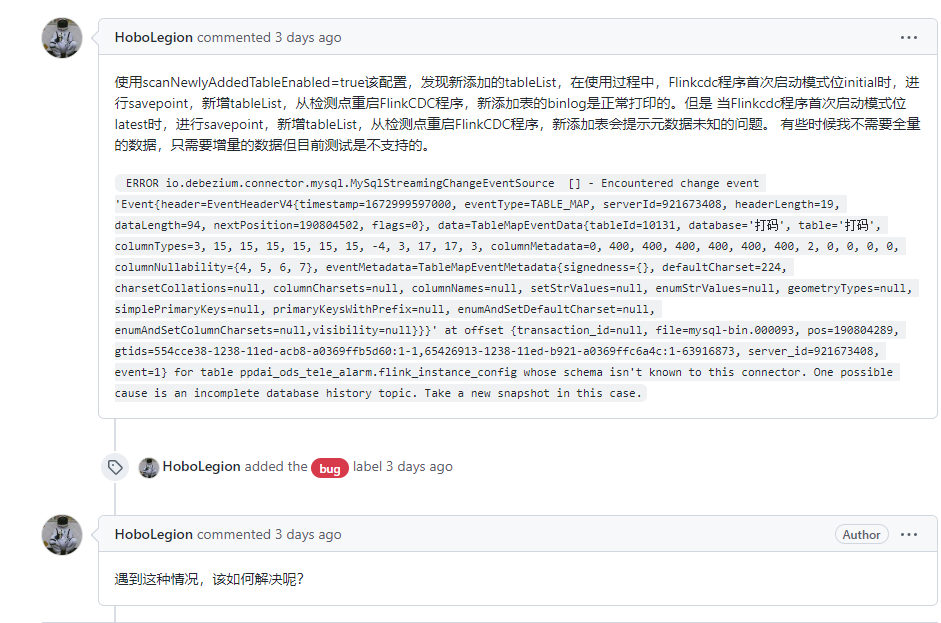 对于Flink CDC,有大佬遇到过这个问题吗?加了表然后从checkpoint启动就报这个