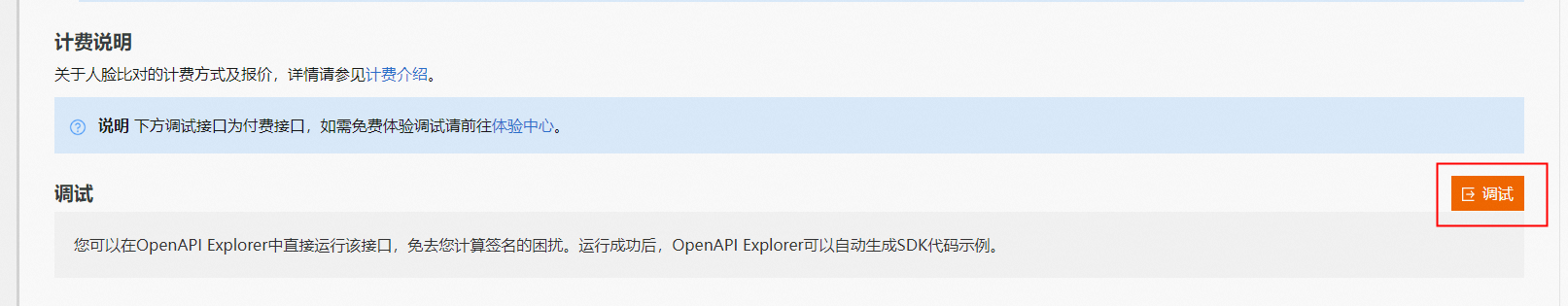 阿里云视觉智能开放平台有部分能力因为展示效果的原因,不支持前端页面可视化体验,但是可以通过文档页面中的调试按钮进入openapi体验效果。