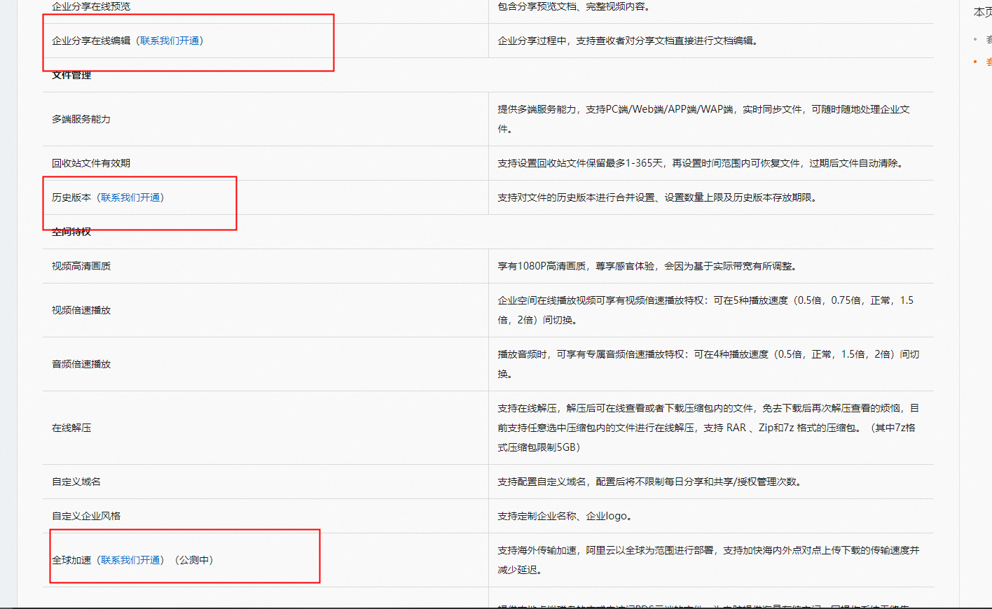 当前企业版只有全球加速(公测中暂时免费)是增值服务,此回答整理自钉群“阿里云网盘与相册服务客户群”