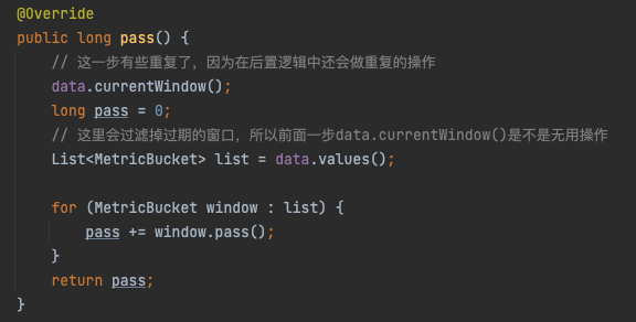 com.alibaba.csp.sentinel.slots.statistic.metric.ArrayMetric#pass这个方法的第一行是不是可以不要