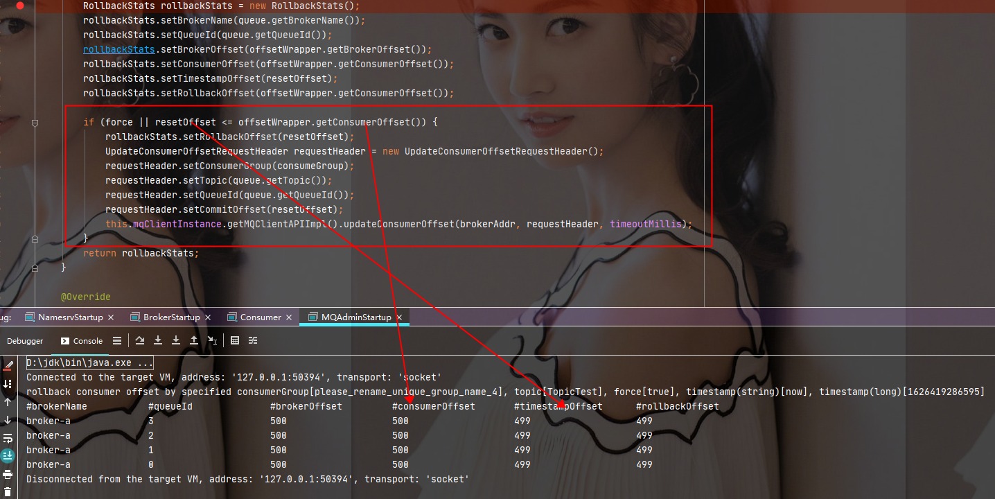 当我尝试使用mqadmin中的resetOffsetByTime命令时,如果我现在设置为,控制台返回的回滚偏移量似乎总是小于代理偏移量,为什么?