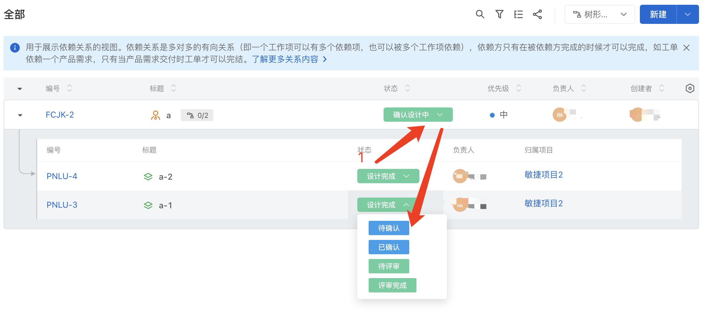 在云效中,您可以使用自动化规则(Auto Rule)来实现当所有依赖的子项状态都为 "设计完成" 时,修改父级工作项的状态为 "确认设计中"。以下是一种可能的设置方法: