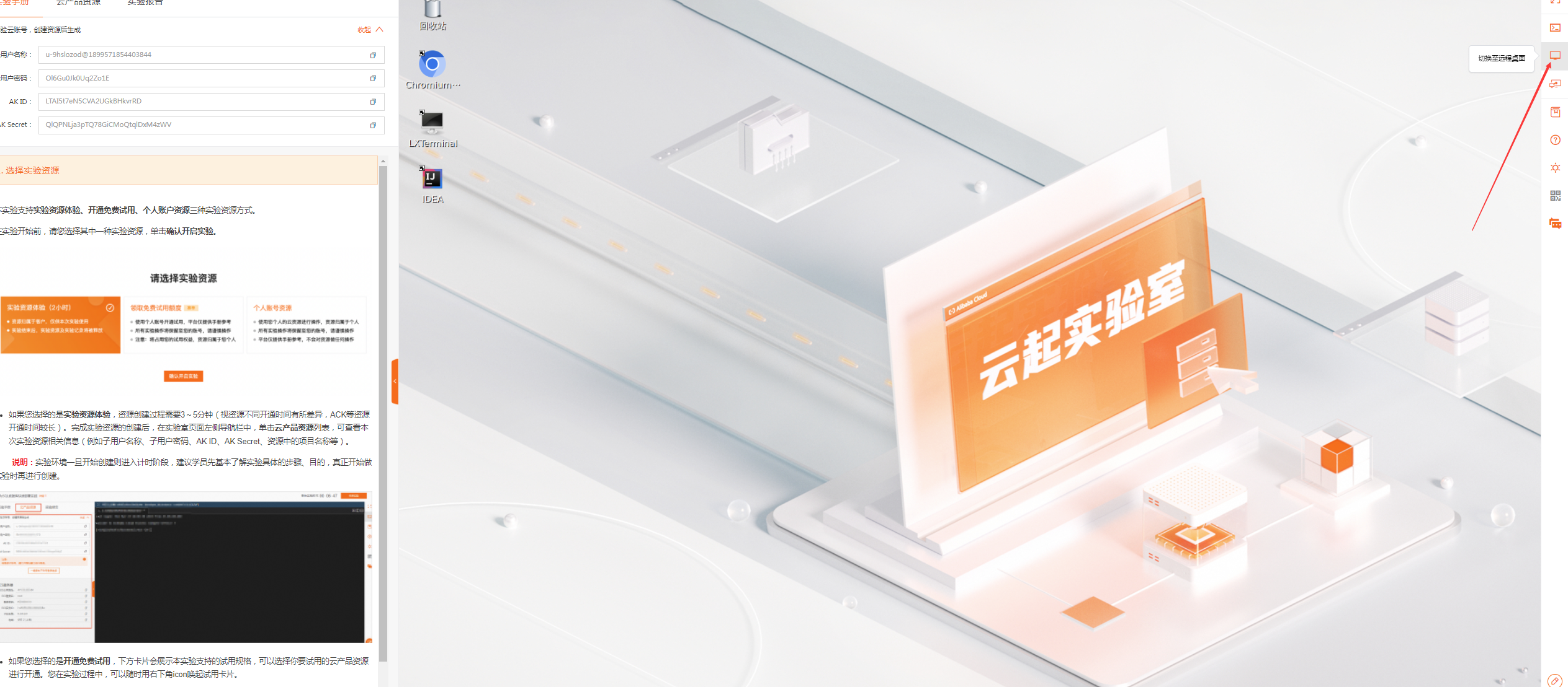 如果您选择的是开通免费试用,下方卡片会展示本实验支持的试用规格,可以选择你要试用的云产品资源进行开通。您在实验过程中,可以随时用右下角icon唤起试用卡片。