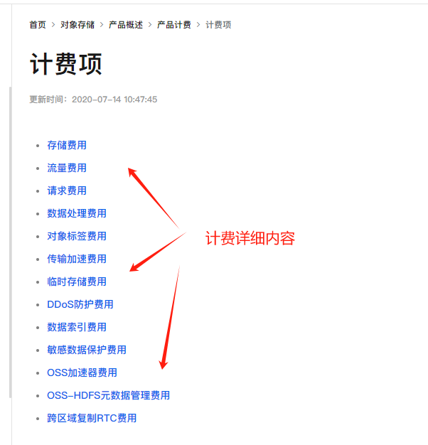 另外,对象存储OSS费用组成分的比较细,包含存储费用、流量费用、请求费用、数据处理费用、对象标签费用、传输加速费用、临时存储费用、DDoS防护费用、数据索引费用、敏感数据保护费用,详细的计费可以参考文档:文档