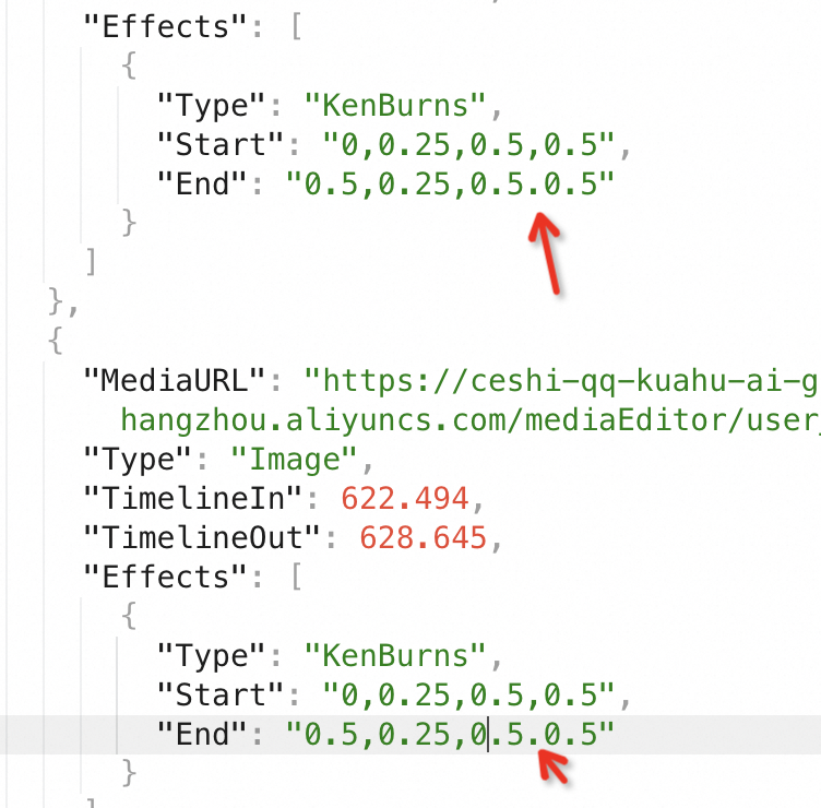 工程id 173d04d29e124df0be7e99509c209062 经过反复测试发现,只要是添加了镜头移动的Start 和 End后会直接报错并不执行合成。这个是我设置的Start和End的截图。在智能媒体服务是不是这里理解有误?