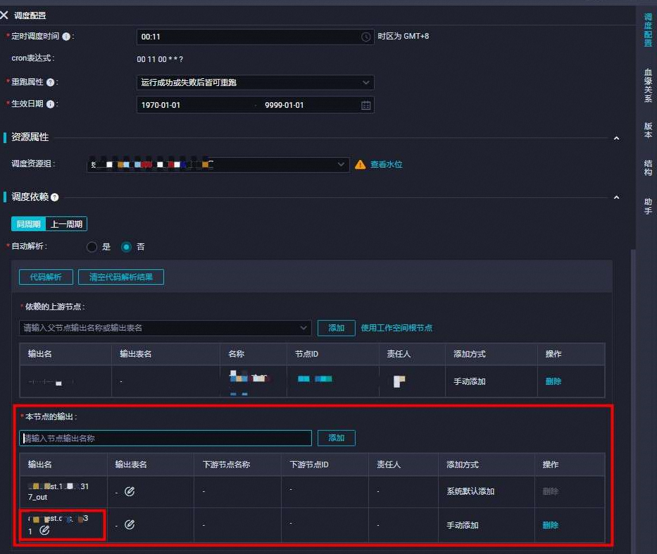 1、找出两个输出名称相同的节点,修改下本节点输出名特别注意:若需要修改的输出名称下方有依赖关系,不可随意修改本节点输出名称,请和下游同学沟通,保证依赖关系不会丢失后再进行修改。