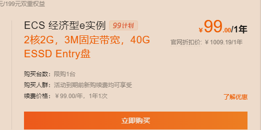 购买地址: https://www.aliyun.com/daily-act/ecs/activity_selection?spm=5176.8789780.J_3965641470.2.b22e39fbFdS9NT