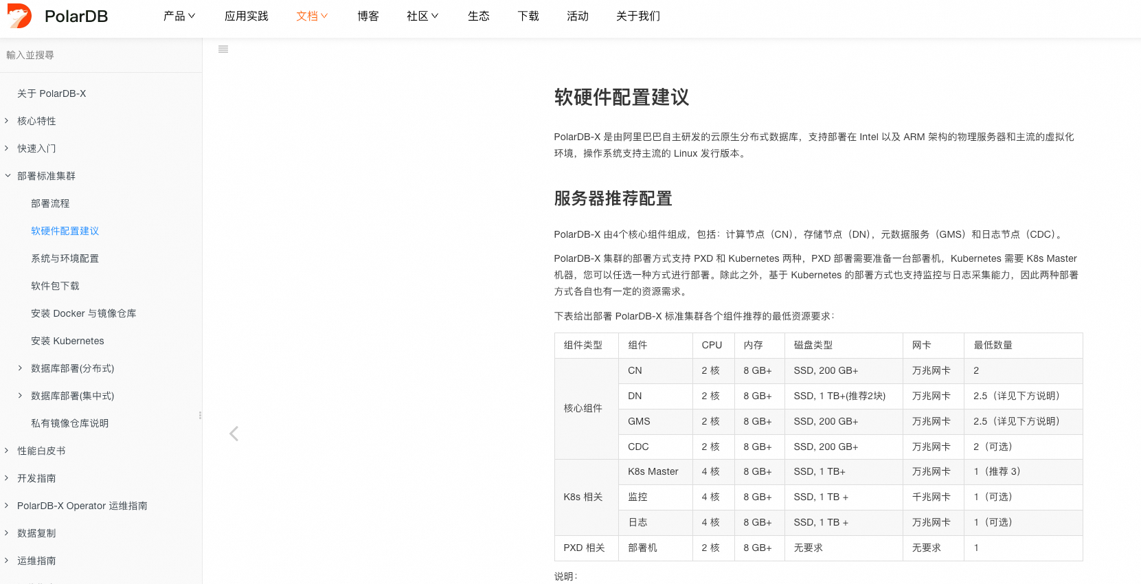 您好,PolarDB分布式版(PolarDB-X)已经开源,支持本地部署。服务器要求可以参考文档:https://openpolardb.com/document?type=PolarDB-X