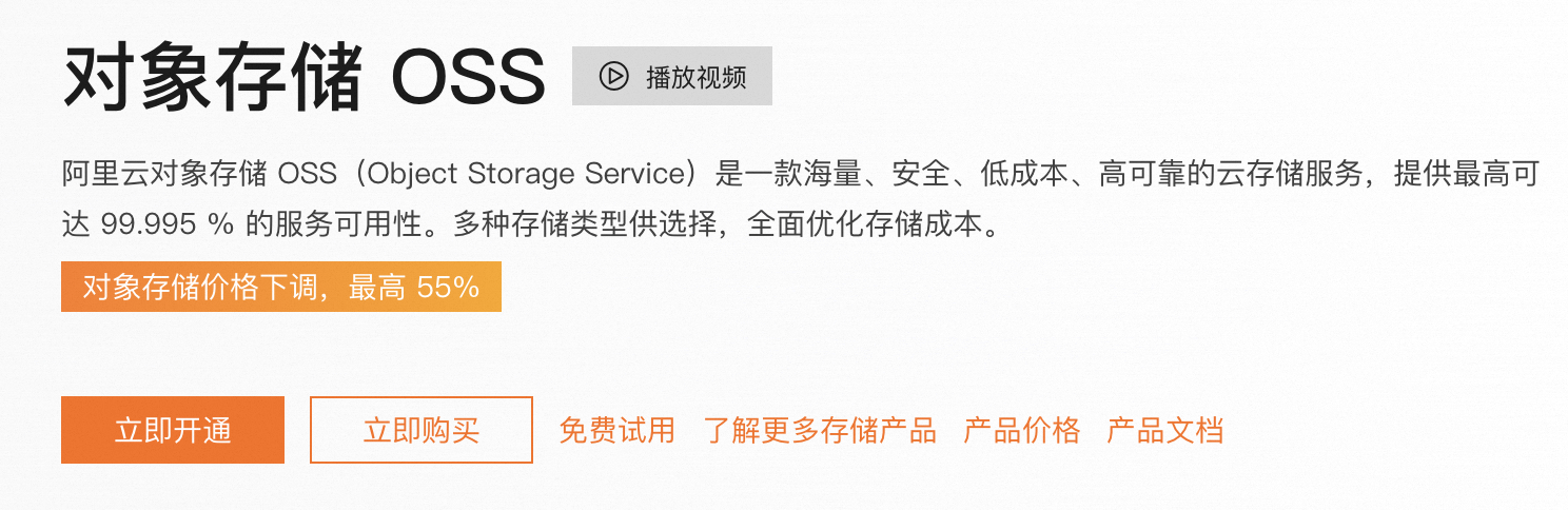 详细参考对象存储OSS官方页面:https://www.aliyun.com/product/oss