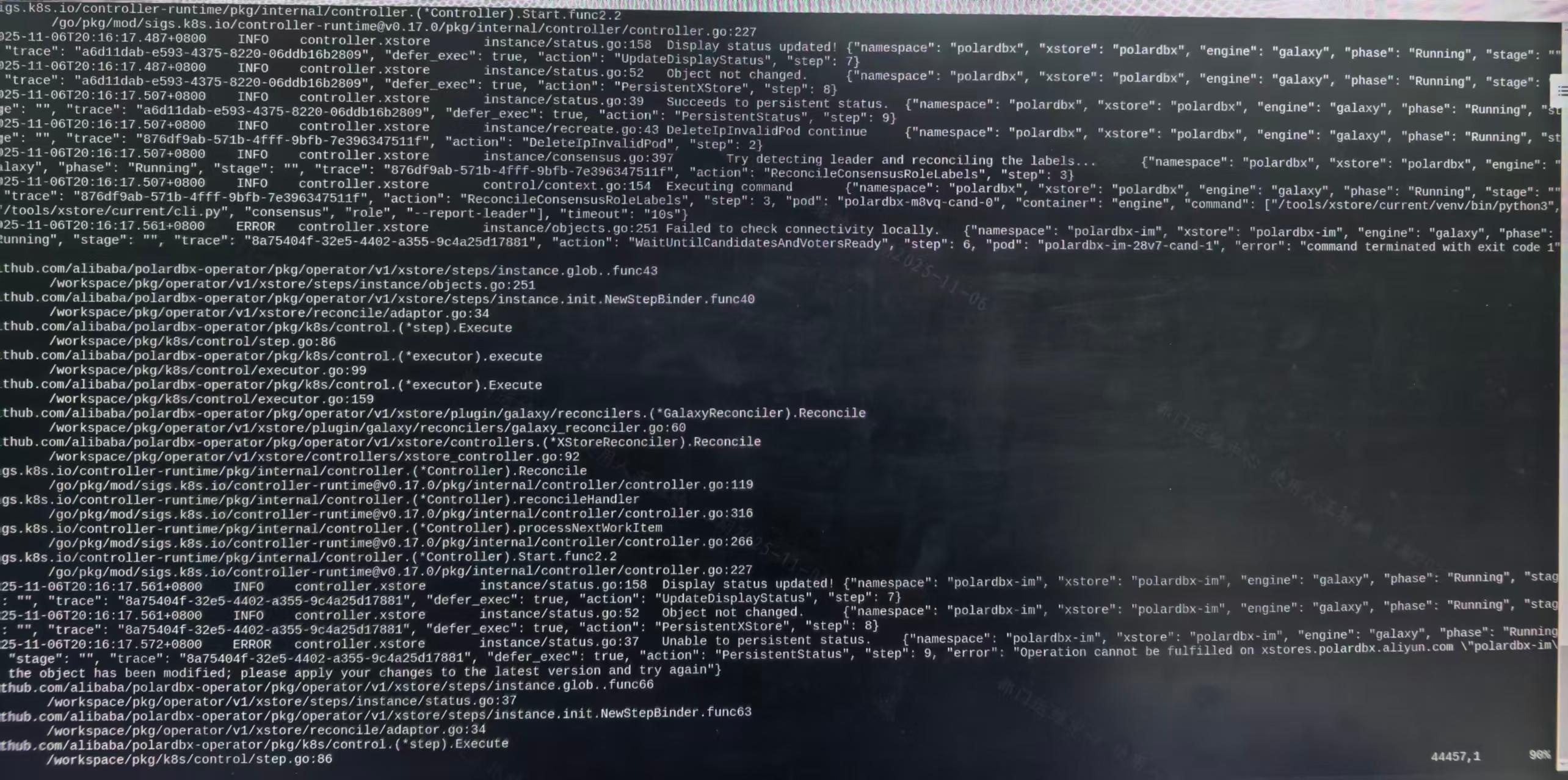 我在k8s集群中部署了一台polardb的标准版集群,一主一从一日志,镜像版本是v2.4.1_8.4.19-20241111,使用的默认配置的参数,设置的资源大小是32C64G,正常运行一个月之后出现了主节点莫名重启的问题,一天可能会触发1-2次,查看alert.log和polardb-controller-manager的日志,查看服务器时间也是正常的,并且有时候是两套数据库的主节点几乎在同时间发生重启,查看监控发现cpu使用率高点,高峰期达到了115%,其余异常现象没有发现