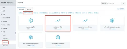 接入Arms-应用监控 在容器服务的应用目录里找到“ack-arms-pilot” 填入合适的参数后,“创建”即可,图中红框标注处均需要填入自己集群对应的值 创建完成后可以用下面这个例子来验证安装是否成功